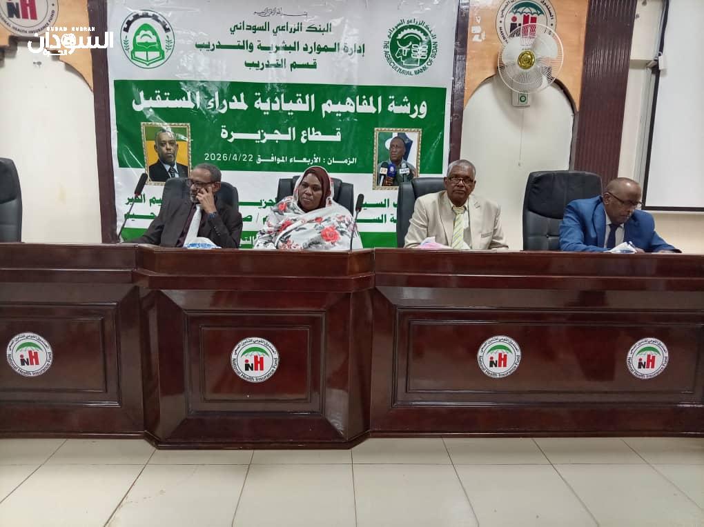 وقال يس عبد الله السيد المدير العام للشؤون الإدارية بالبنك الزراعي السوداني خلال مخاطبته، ورشة المفاهيم القيادية لمديري المستقبل لقطاع البنك الزراعي بالجزيرة التي تنظمها إدارة الموارد البشرية والتدريب بالبنك، بقاعة التأمين الصحي بود مدني: “تأتي أهمية الورشة في أنها خطوة في سبيل ملء المقاعد الشاغرة والإحلال لقيادات سوف تتقاعد قريباً، إضافة إلى أنها تأتي من ضمن برنامج الإصلاح المالي والإداري الذي ينشده البنك، ولفت إلى أن المؤتمر السنوي لمديري القطاعات والفروع الذي يضم كافة ولايات السودان سيتعرض فيه الأداء خلال الربع المالي الأول، إضافة إلى استعراض مسودة سياسة التمويل للموسم الزراعي الصيفي”.