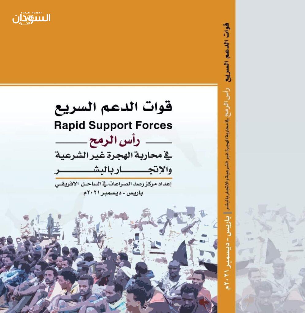 اعده مركز رصد الصراعات في الساحل الأفريقي – باريس / ديسمبر 2021م كتاب يصف قوات الدعم السريع برأس الرمح في محاربة الهجرة غير الشرعية والإتجار بالبشر .